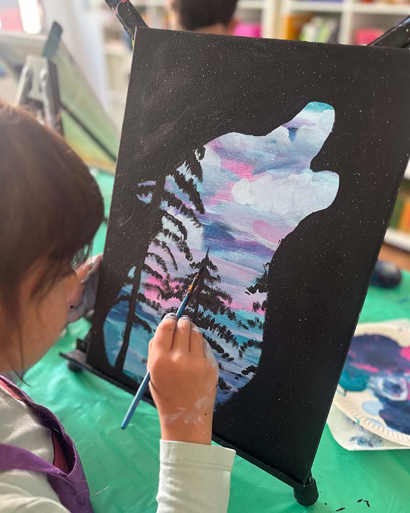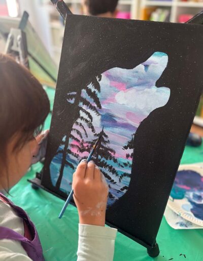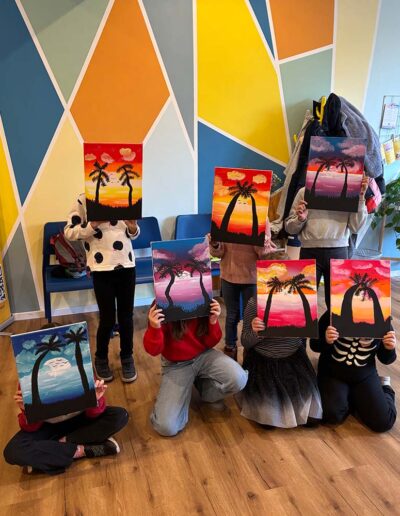 Hier ist jedes Kind eine Künstlerin! Wir gestalten den Malkurs nach euren Wünschen und stimmen die Motive im Voraus mit euch ab. Ob Prinzessinnen, Dinosaurier, Weltraum oder Unterwasserwelten – wir machen die kreativen Träume deines Kindes wahr.