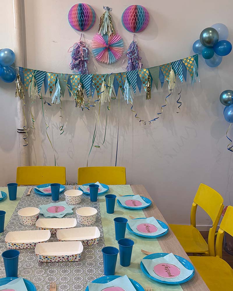 - Möglichkeit für Eltern, eine Stunde früher zur Dekoration des Geburtstagsraumes zu kommen.