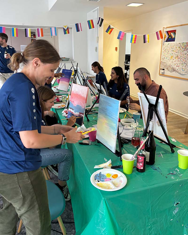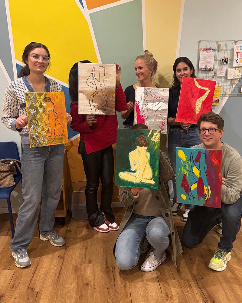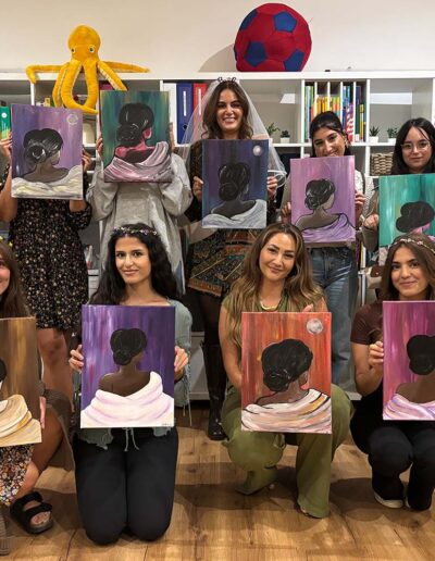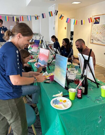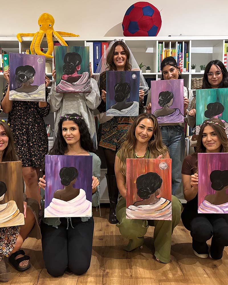 Unsere Malkurse sind ideal für Teams, eine Gruppe von Freunden/Freundinnen, Familienevents oder JGAs jeder Größe und jeden Alters, unabhängig von ihrer Erfahrung im Malen.